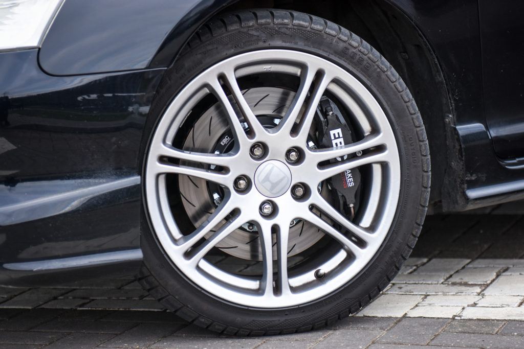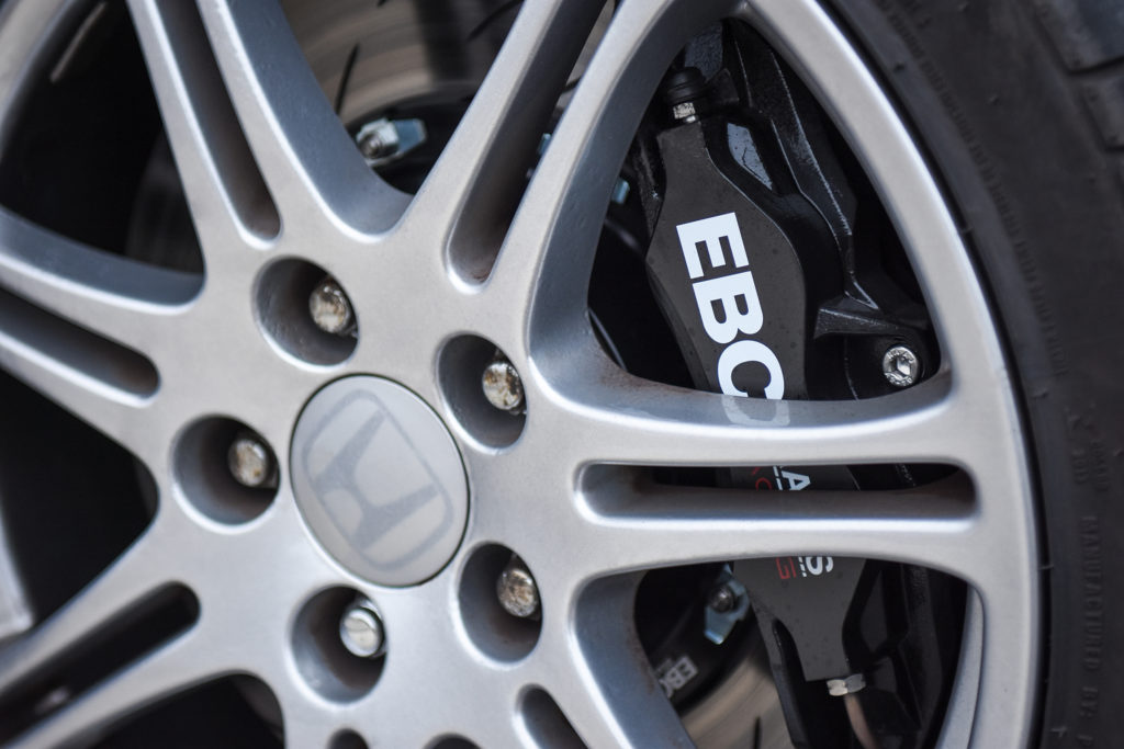 The key thing to remember is that the diameter of the EBC Brakes Racing Brake Kit cannot exceed the inner diameter of the wheels that you have fitted to your vehicle, and the barrel profile and spokes of the wheels limit how wide the calipers can be. EBC Brakes Racing specifies that a minimum clearance of 5.0mm between the caliper and the wheel rim must be respected at all costs. This means 5.0mm minimum clearance between the outboard ‘logo’ face of the caliper and the wheel spokes, and 5.0mm minimum clearance between the top profile of the caliper and the wheel barrel.