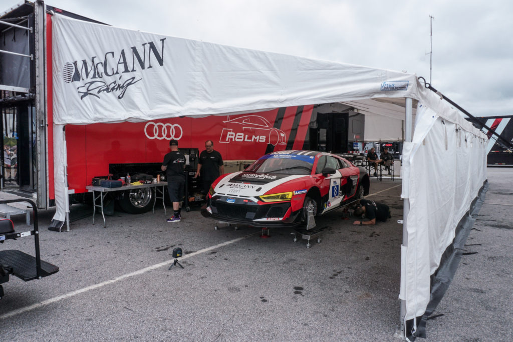 McCann Racing decided to try the SR-Series pads on their Audi R8 LMS GT4 race car that competes in the IMSA Michelin Pilot Challenge (in the GS class), with hopes for a cure. The venue chosen for testing was the ‘Virginia is for Racing Lovers’ event at Virginia International Raceway, amidst a wet race weekend. No changes were made to the vehicle besides popping in a full set of SR pads.